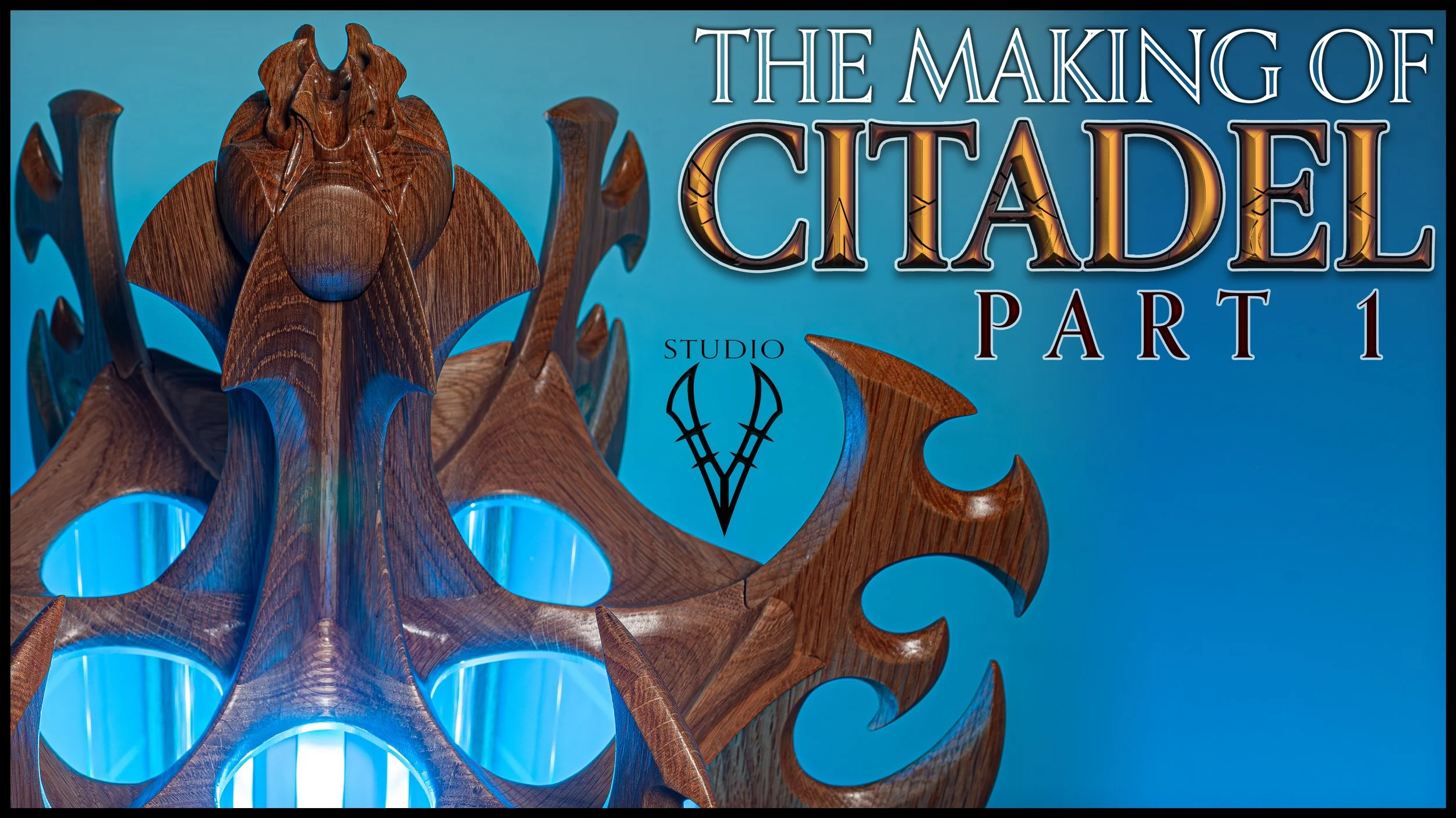 From the medium of American Oak, aluminium, brass, acrylic and various mechanical fixings, the original vision was made manifest. CITADEL has a presence, enhanced by the electrified spinal cord that snakes its way throughout the labyrinthine core, generating life-like attributes.